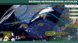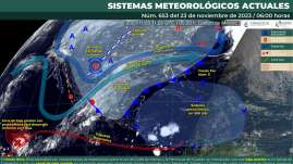 Frente frío número 11 ocasionará ligeras lluvias con chubascos en parte del estado Oaxaca de Juárez, Oax. 23 de noviem...