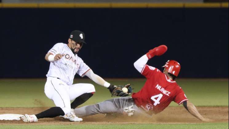 El Glorioso aumentó la ventaja en la cuarta entrada, primero Gustavo Nuñez se embasó en bola ocupada, después el dominicano metió velocidad en la bases y se robó segunda, esto provocó un error del lanzador oaxaqueño Rogelio Martínez, quien falló en un revire para poner fuera al corredor y Nuñez aprovechó y entró a la registradora, 6-1 la pizarra.