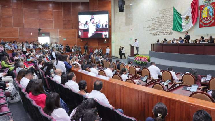 Ante los y las congresistas señaló que en Oaxaca se construye la paz con un gobernante cercano al pueblo, que se guía por valores fundamentales: la democracia, la transparencia y la rendición de cuentas.