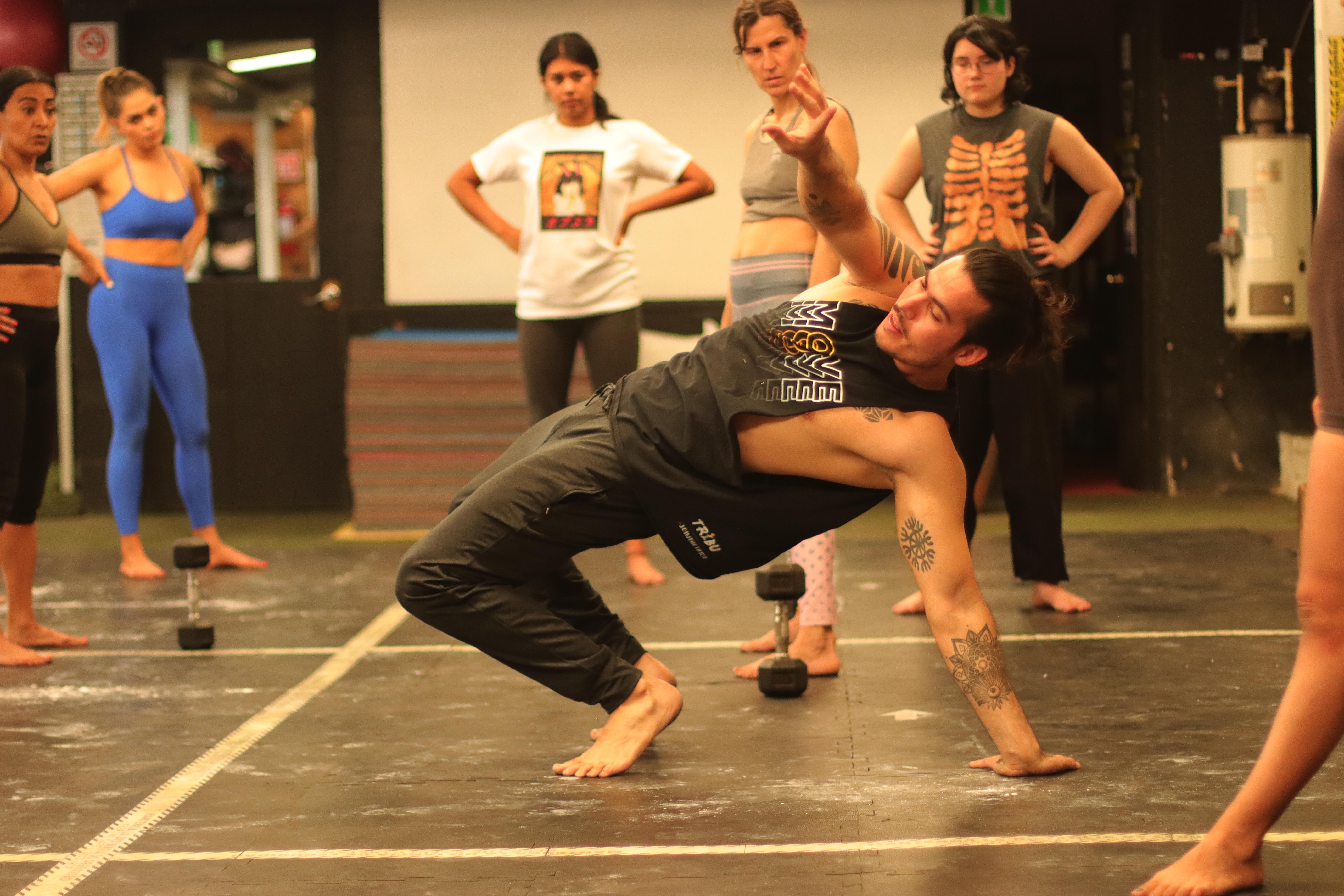 Desde una perspectiva envolvente y desafiante, Daniel Pacheco trabajó alrededor de los cuatro núcleos que integra esta disciplina, que es fuerza, flexibilidad, hand balance y flow work y acrobacia de piso.
