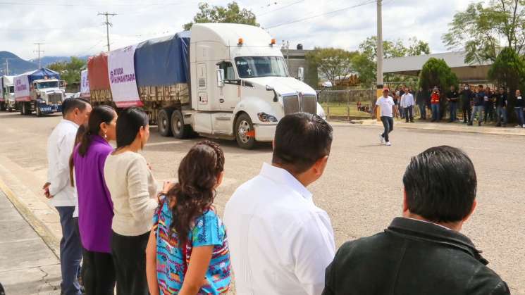 - El Gobernador Salomón Jara Cruz y la Presidenta Honoraria del organismo Irma Bolaños Quijano supervisan la salida de la ayuda humanitaria