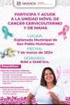 Realizarán tomas para detección de cáncer cervicouterino y de mama La unidad móvil de SSO se ubicará en la explanad...