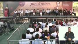 AMLO y Sheinbaum inauguran camino artesanal en Guelatao