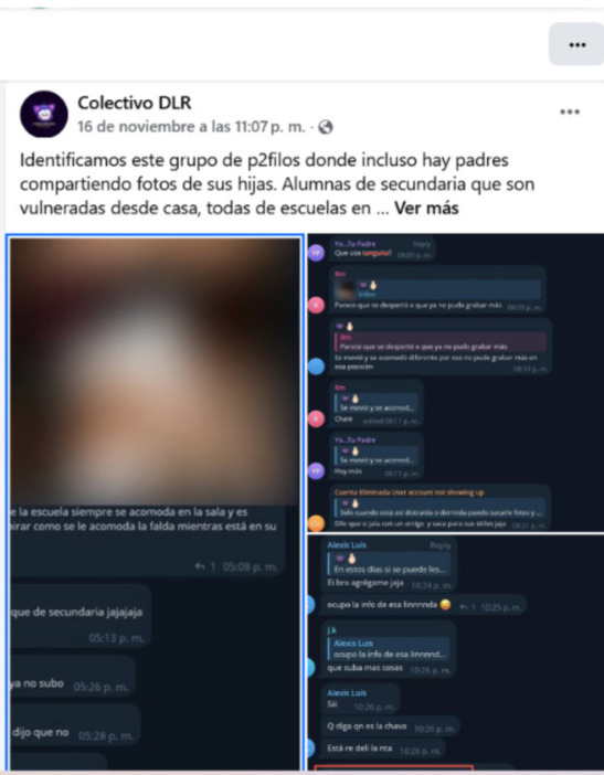 La denuncia adquiere una dimensión alarmante, pues el Colectivo DLR en su publicación del pasado 16 de noviembre, identificó que parte de este material ha sido compartido por los propios padres o padrastros de las menores.