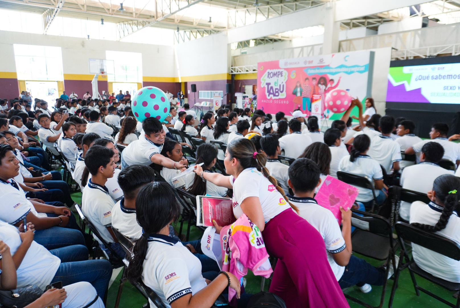 Región Istmo, Oax. 15 de abril de 2025.- El Sistema para el Desarrollo Integral de la Familia (DIF) Oaxaca implementó la campaña “Rompe el Tabú, hazlo seguro” en la región Istmo donde atendió a 2 mil 157 adolescentes de los municipios El Espinal, Juchitán de Zaragoza, Salina Cruz y Santo Domingo Tehuantepec, quienes reforzaron la información de sus derechos sexuales y reproductivos.