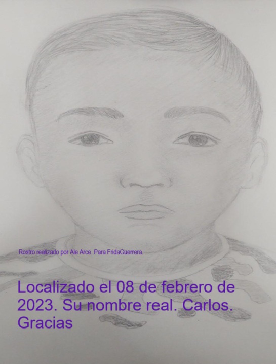 En esta ocasión no publicaremos el rostro real del pequeño Carlitos, por respeto a su familia, seguiremos compartiendo el rostro que realizó Ale Arce.