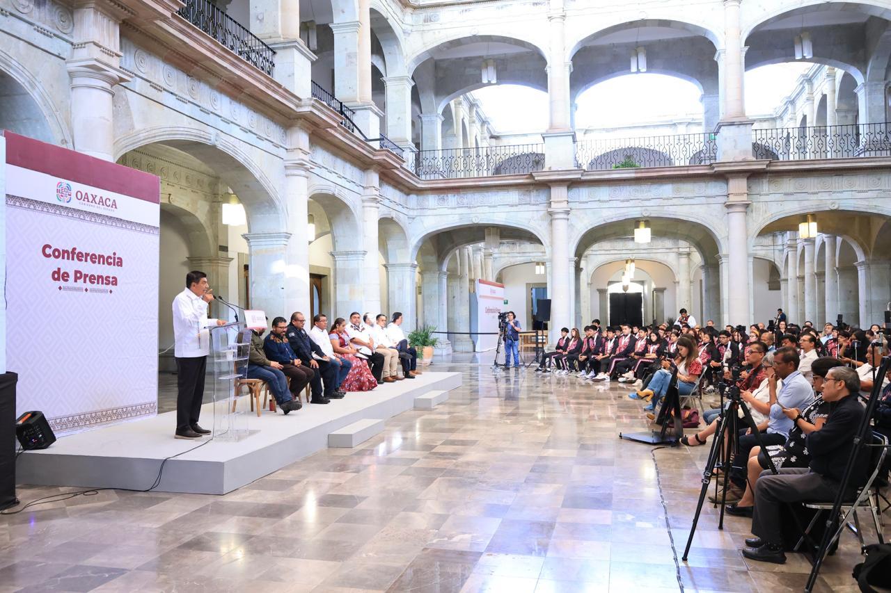 Visiblemente contento por las cifras oficiales que avalan su recuento, señaló que su gobierno es el único que tiene políticas sociales propias que atienden especialmente a las juventudes y mujeres en cada de los 570 municipios del Estado, a través de los programas Mujer Primavera, Tarjeta Margarita Maza, Farmacias Bienestar, Caravanas Ve’e tata, Mi Primera Chamba, Tarjeta Joven, Tequios Bienestar y Útiles para el Bienestar.