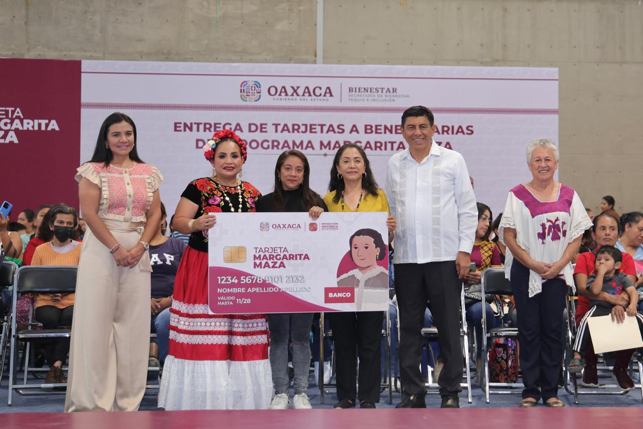 “La Tarjeta Margarita Maza tiene el rostro y corazón de una mujer, ustedes todos los días nos muestran y enseñan que son el pilar que nosotras y nosotros necesitamos, y sostiene la transformación de Oaxaca”, declaró.
