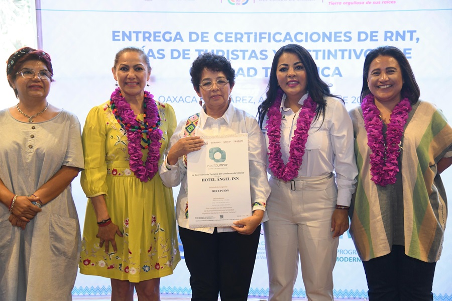 Oaxaca .- La secretaria de Turismo, Saymi Pineda Velasco entregó 82 distintivos de calidad y certificaciones del Registro Nacional de Turismo a empresas, personas operadoras y guías turísticas; lo que permite garantizar la alta calidad de los servicios en Oaxaca para la atención a turistas nacionales e internacionales.