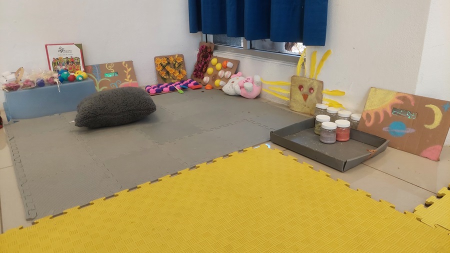 Además, se tuvo la experiencia con un sensorama desmontable para niñas, niños y adolescentes que permite expresión o regulación emocional, así como de un espacio seguro de contención en caso de ser necesario.