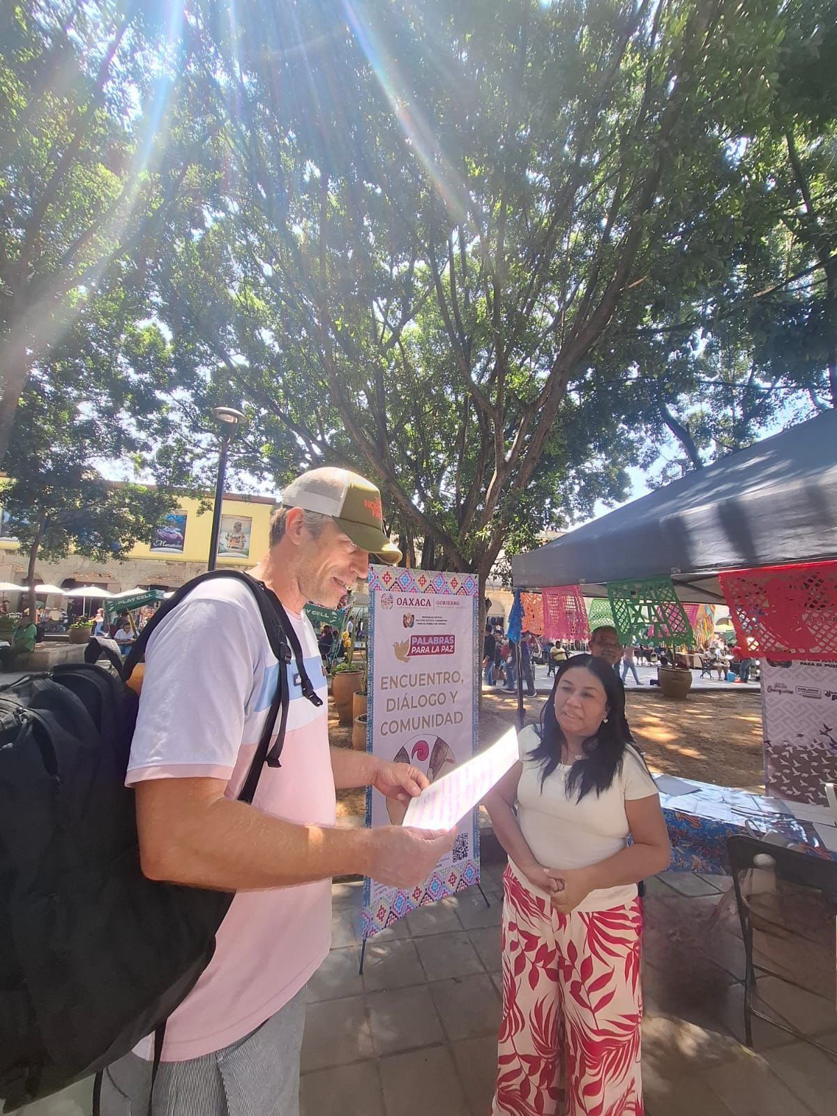 A través de un espacio ubicado en el zócalo de la capital oaxaqueña, habitantes locales escriben cartas dirigidas a visitantes de diversos estados de la República Mexicana y de otros países; a fin de establecer un puente para el diálogo y el entendimiento.