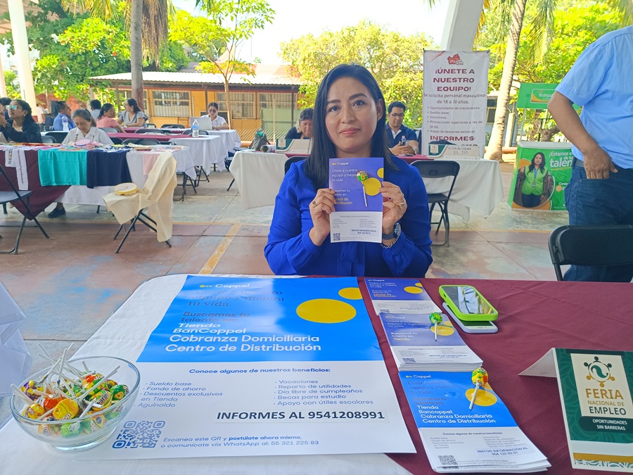 Oaxaca.- La Coordinación del Servicio Nacional de Empleo Oaxaca (CSNEO) y el Sistema Estatal para el Desarrollo Integral de la Familia (DIF), realizaron la Feria Nacional de Empleo “Inclusión y Turismo: Impulsando Oportunidades en la Costa de Oaxaca”; para fomentar la reactivación económica en la región, tras el impacto del huracán Erick.