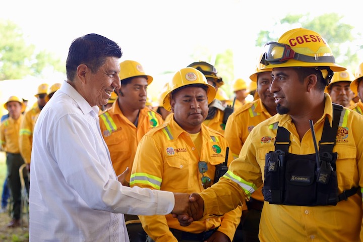 En un evento realizado en el Bosque El Tequio, el Mandatario estatal entregó de manera simbólica reconocimientos a las brigadas oficiales de la Comisión Estatal Forestal (Coesfo), Comisión Nacional Forestal (Conafor), Comisión Nacional de Áreas Protegidas (Conanp) y el Heroico Cuerpo de Bomberos (HCBO); a quienes reconoció su valentía, porque aún arriesgado su vida, apoyan a las comunidades.
