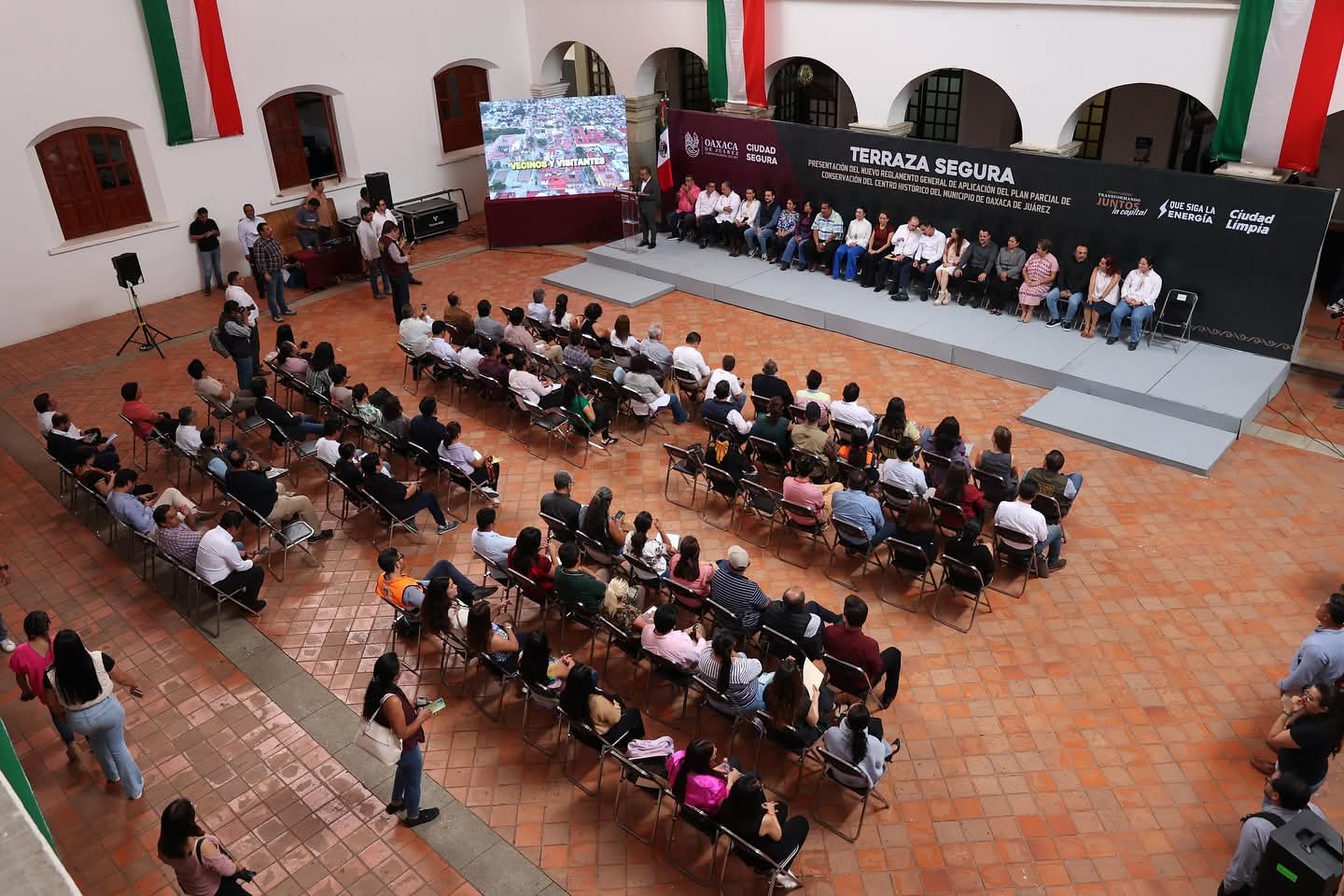 Oaxaca.- El presidente municipal de Oaxaca de Juárez, Raymundo Chagoya Villanueva, presentó del Nuevo Reglamento General de Aplicación del Plan Parcial de Conservación del Centro Histórico, que incorpora el distintivo “Terrazas Seguras” como parte de un programa integral para ordenar y garantizar la seguridad en los espacios públicos de la capital.