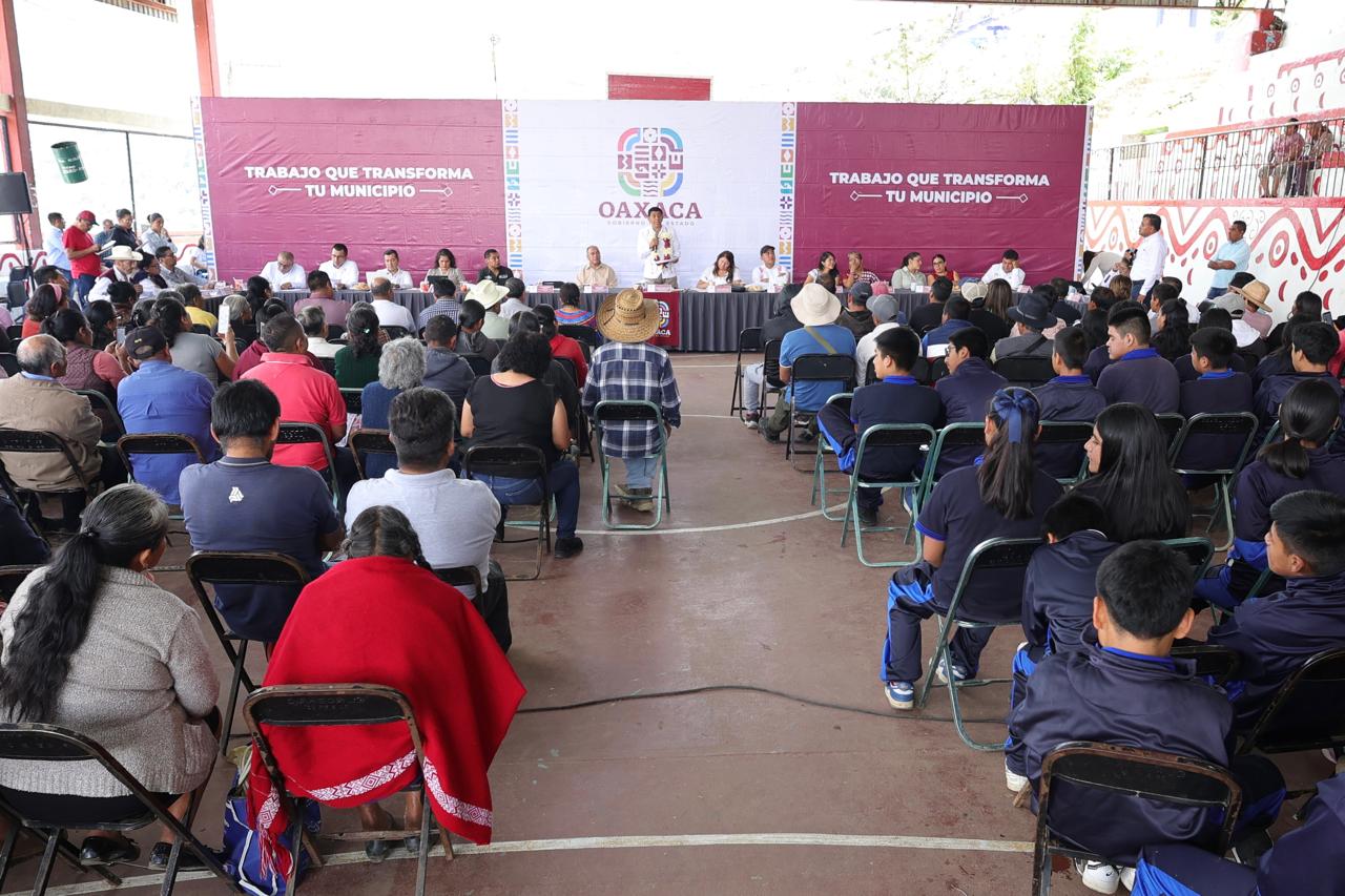 En asamblea con habitantes de este pueblo mazateco, Jara Cruz indicó que el Instituto Estatal de Educación Pública de Oaxaca (IEEPO) entregará a 10 centros educativos del nivel básico: computadoras, impresoras, proyectores, mobiliario, pizarrones y material de aseo, deportivo y de oficina; un favor de 347 alumnas y alumnos. Esta acción tendrá un presupuesto de 1 millón 356 mil 474 pesos.