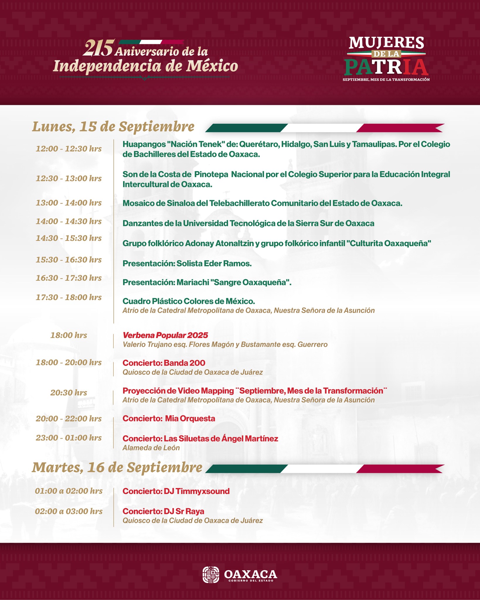 Oaxaca,.- El Gobierno del Estado de Oaxaca  invita a la ciudadanía  a disfrutar las fiestas Patrias  en el Zócalo citadino: