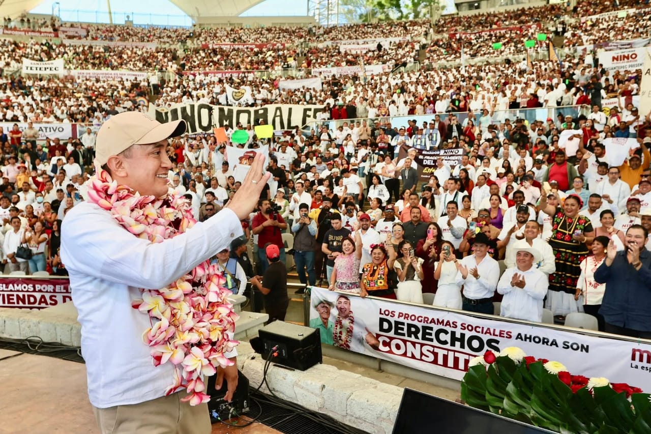 En este sentido, reconoció la labor del Gobernador Salomón Jara Cruz, señalando que en Oaxaca se vive una "verdadera primavera" gracias a su gestión honesta y cercana, lo que ha permitido que la economía crezca, la pobreza se reduzca y la paz florezca.