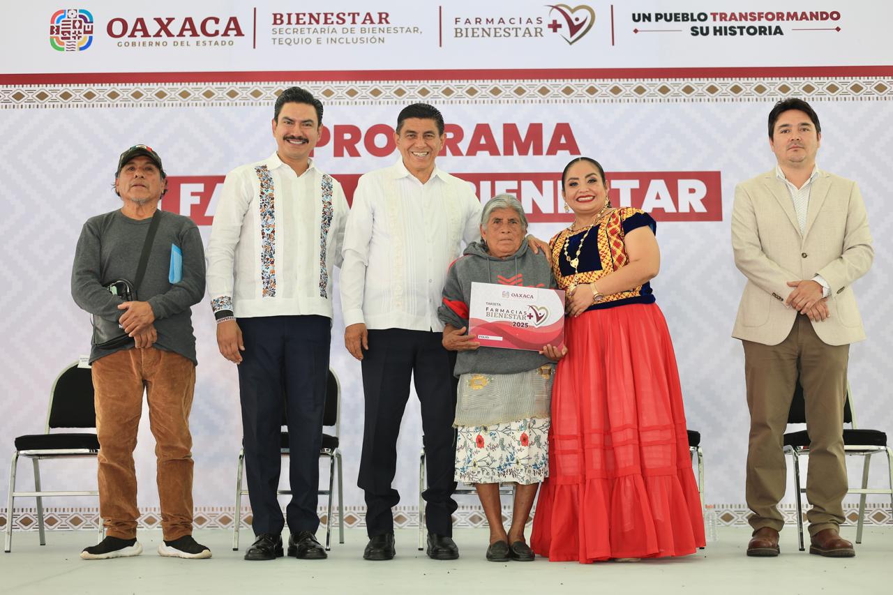 Oaxaca.- Con el objetivo de ampliar el acceso a servicios médicos gratuitos, el Gobernador Salomón Jara Cruz entregó tarjetas del programa Farmacias Bienestar, en el cual se aplica una inversión de 156 millones de pesos.