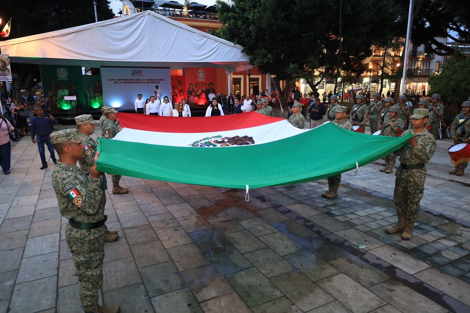Oaxaca.- Al encabezar el arriamiento del Lábaro Patrio en la Alameda de León, la coordinadora de Comunicación Social del Gobierno del Estado, Elizabeth Álvarez Acosta destacó el papel fundamental de las mujeres en la administración pública de Oaxaca y México.