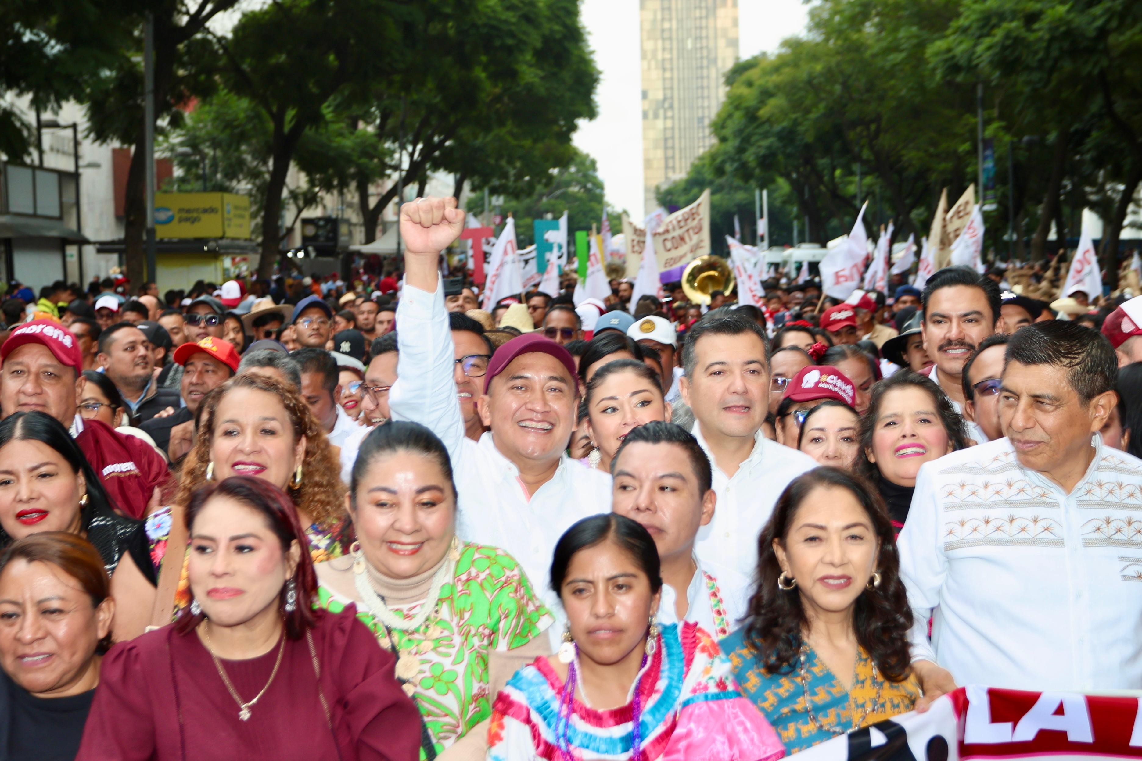 Oaxaca.- La transformación avanza en todo el país, exaltó el senador oaxaqueño Antonino Morales Toledo, luego de participar en la calenda para celebrar el primer año de gobierno de la Presidenta Claudia Sheinbaum Pardo.