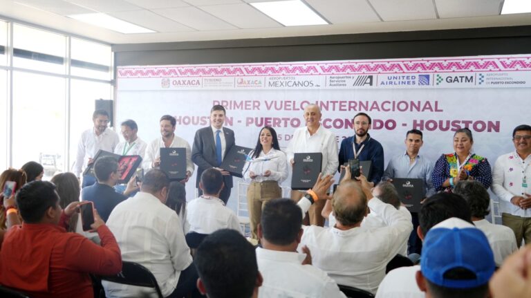 En la recepción del vuelo, Pineda Velasco destacó que Puerto Escondido tiene el respaldo total del Gobernador Salomón Jara Cruz para lograr que el turismo se convierta en un motor de desarrollo económico y de justicia social para las y los oaxaqueños.
