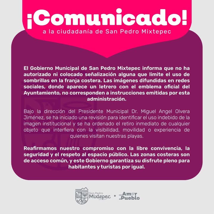 Ante esta situación, el Ayuntamiento de Mixtepec, liderado por el alcalde Miguel Ángel Olvera, ha aclarado que esta disposición no proviene de su administración.