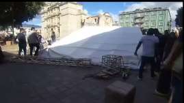 Cae estructura en zócalo de capital de Oaxaca,no hay heridos