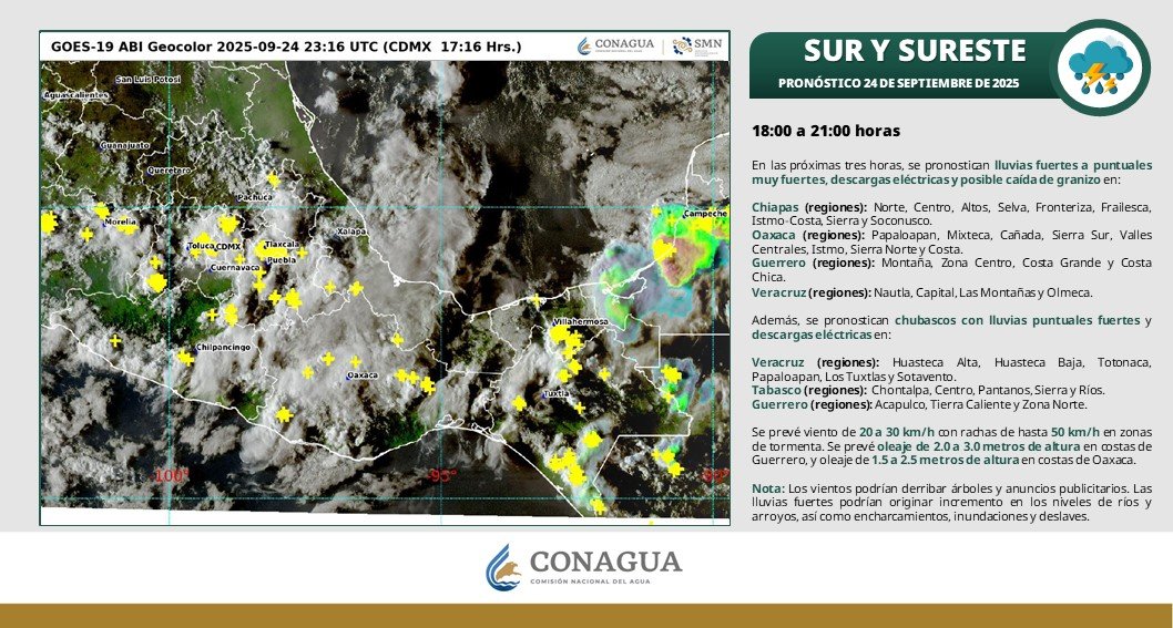 Oaxaca.- La Coordinación Estatal de Protección Civil y Gestión de Riesgos (CEPCyGR) emite las siguientes recomendaciones ante las lluvias intensas que se prevén, durante las próximas horas, en la ciudad de Oaxaca y en municipios conurbados.