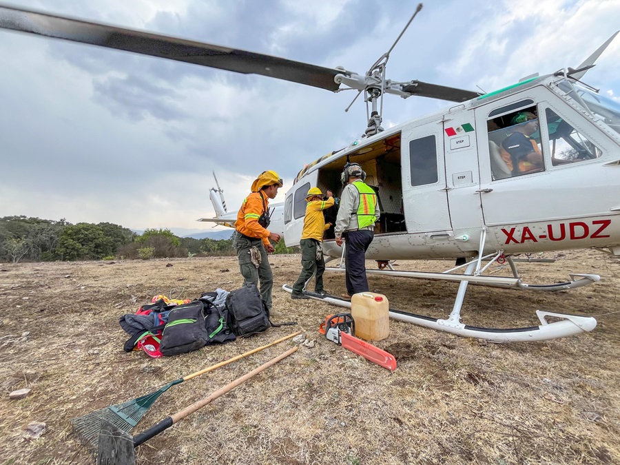 Cabe mencionar que este martes, arribó un equipo aéreo del Gobierno del Estado con el que se han realizado sobrevuelos de reconocimiento y evaluación; así como la movilización de 46 personas combatientes y voluntarias y el ingreso de víveres en dos puntos de este incidente.