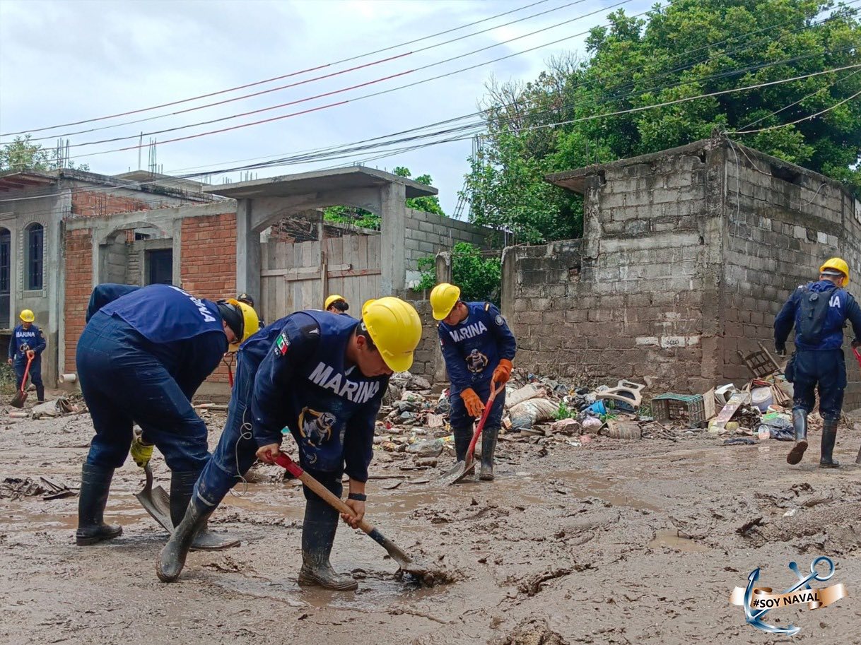 Asimismo, personal naval continúa brindando auxilio a la población civil con la remoción de lodo y basura, lo que ha permitido liberar vialidades y desazolvar el canal de navegación del Corralero con maquinaria pesada; de igual manera, elementos de Sanidad Naval brindan consultas médicas en comunidades de difícil acceso, con el fin de contribuir a la salud de la población de menores de edad, adultos y adultos mayores.