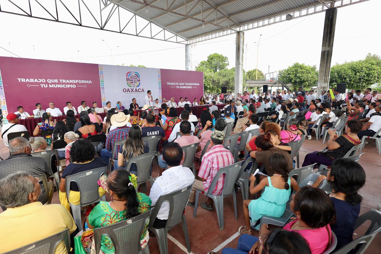 En su encuentro con el pueblo de Reforma de Pineda, el Mandatario oaxaqueño informó diversas acciones como parte de la estrategia Trabajo que Transforma tu Municipios, destacando la rehabilitación del sistema de agua potable, una exigencia de muchos años.