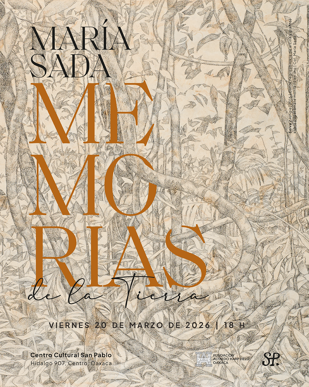 Oaxaca.- La Fundación Alfredo Harp Helú Oaxaca, a través del Centro Cultural San Pablo, se complace en presentar la muestra “María Sada. Memorias de la Tierra”, que será inaugurada el próximo viernes 20 de marzo de 2026 a las 18 horas en la ciudad de Oaxaca.