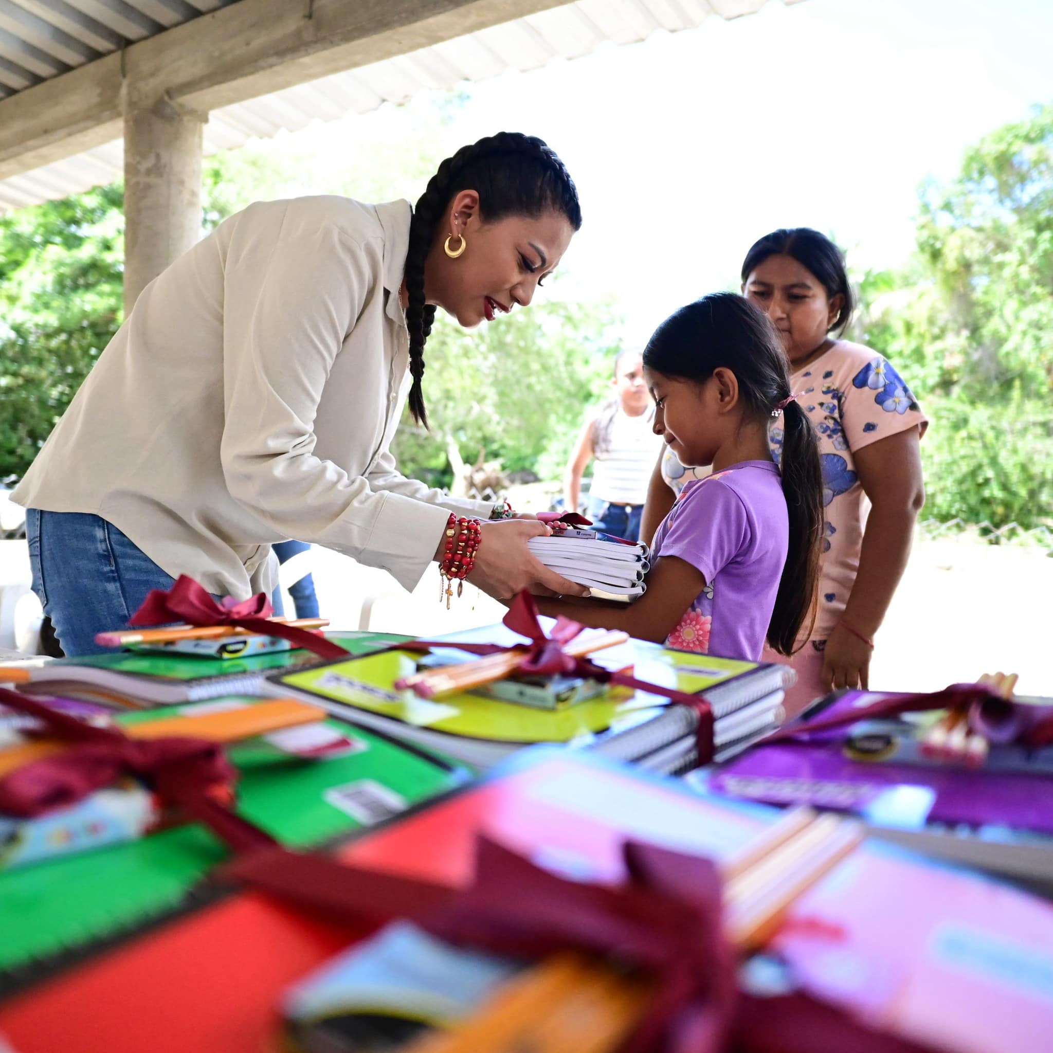 Promoción del hábito de la lectura y útiles escolares, otro de los programas personales de Clarissa Bornios.