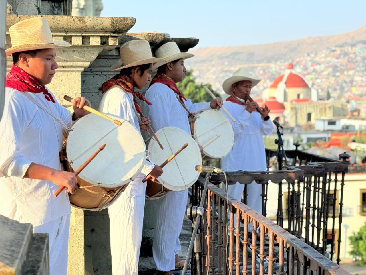 El evento, reunió las tradiciones más arraigadas de la comunidad, con un festejo que entrelazó la música de la tradicional chirimía que interpretó “Las mañanitas” desde lo alto de la Catedral Metropolitana para dar paso al repique de campanas en templos de la capital oaxaqueña y luego a la interpretación de Mujer Oaxaqueñas y Dios Nunca Muere con el tenor Isael Rivera Cañas con el acompañamiento del Coro del Municpiio y la Banda de Música de la Policía Municipal.