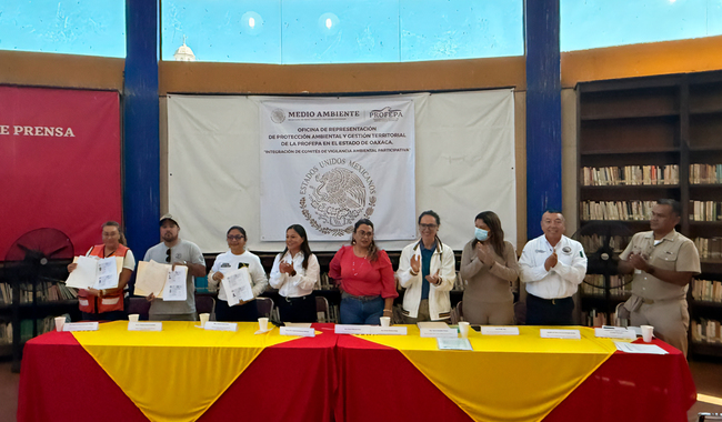 Oaxaca.- La Procuraduría Federal de Protección al Ambiente (Profepa) llevó a cabo la integración y capacitación de siete Comités de Vigilancia Ambiental Participativa (CVAP) en los municipios de Salina Cruz, Santa María Tonameca y San Pedro Pochutla, en Oaxaca, con el propósito de fortalecer la participación social en la prevención, detección y denuncia de posibles infracciones a la normatividad ambiental federal.