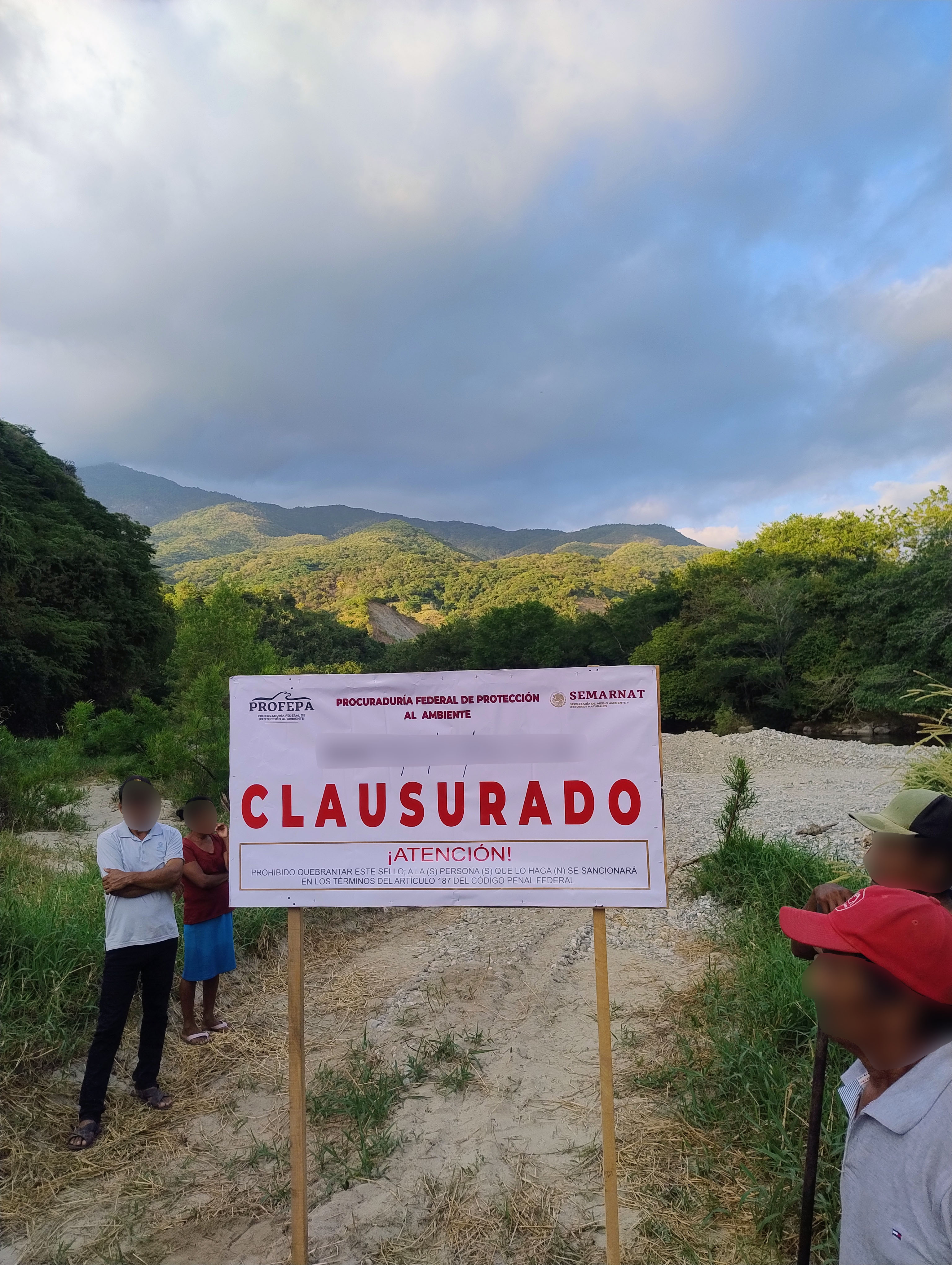 Por no presentar la autorización en materia de impacto ambiental emitida por la Secretaría de Medio Ambiente y Recursos Naturales (Semarnat), la Profepa impuso la medida de seguridad de clausura temporal total de las actividades realizadas en el sitio.