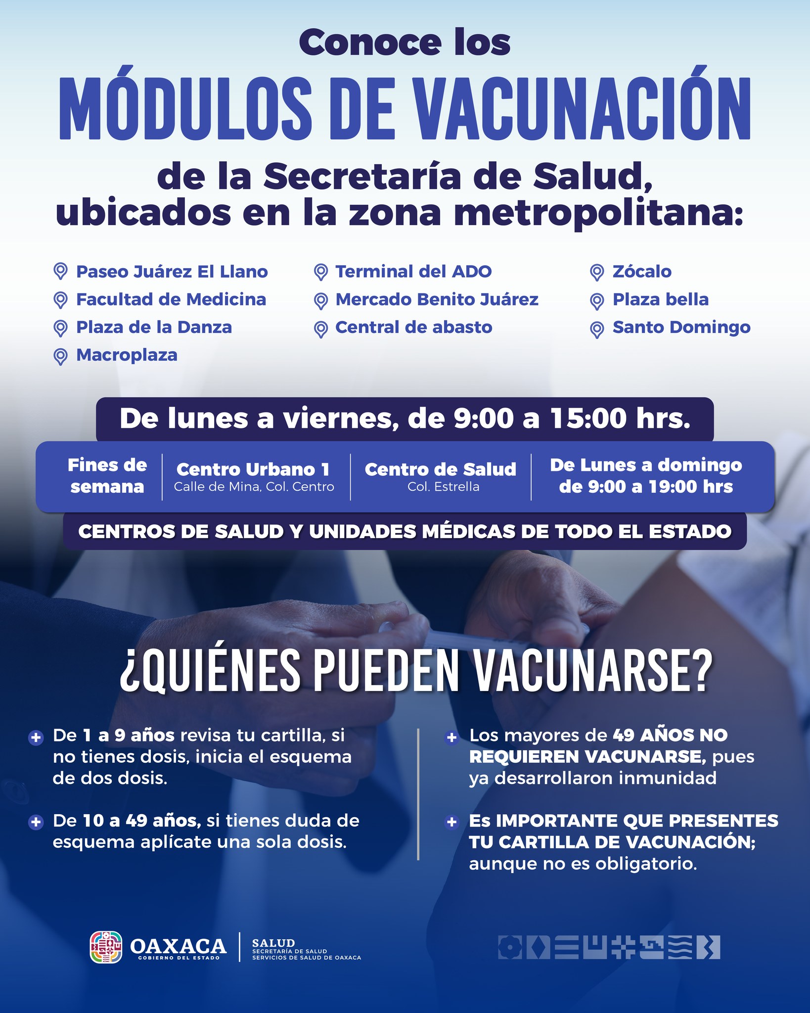 Oaxaca.- Servicios de Salud de Oaxaca (SSO), informa a la población sobre el esquema de vacunación contra el sarampión con base en su rango de edad, que pueden aplicarse en los módulos y unidades médicas.