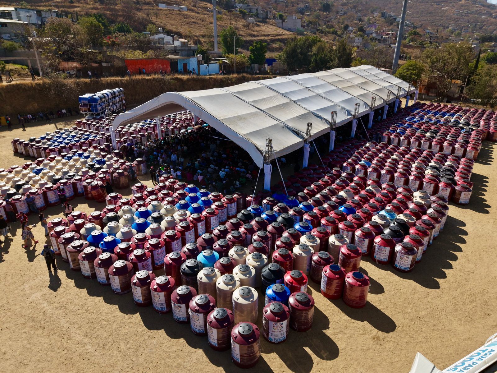 Oaxaca.- El Gobernador Salomón Jara Cruz entregó 1 mil 300 tinacos al mismo número de familias de diversas agencias de la Zona Metropolitana.