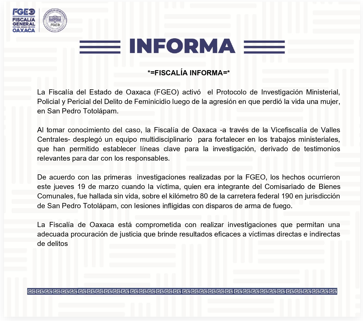 El deceso de la autoridad ejidal, fue confirmado por su familia mediante una esquela que convocó a la comunidad de San Pedro Totolapa al funeral en el panteón municipal,
