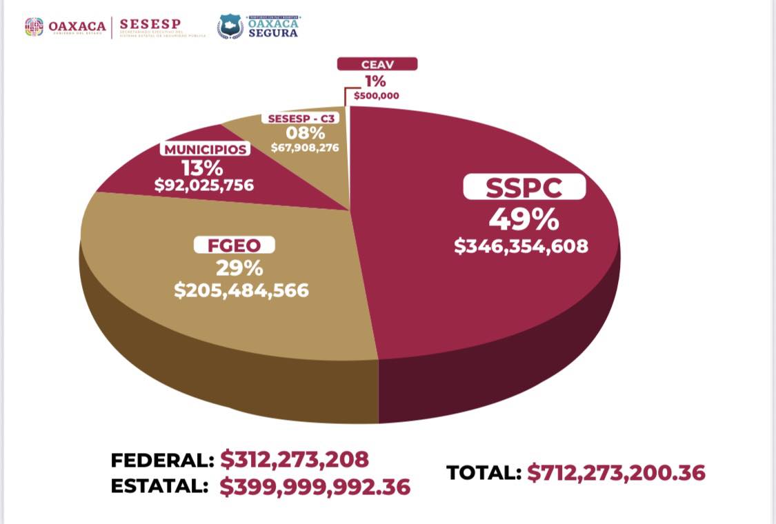 Oaxaca.- En un esfuerzo sin precedentes por consolidar la paz y el orden social en la entidad el Gobernador Salomón Jara Cruz dio a conocer una inversión histórica que supera los 712 millones de pesos destinados a los rubros de seguridad pública, procuración de justicia y atención integral a víctimas.