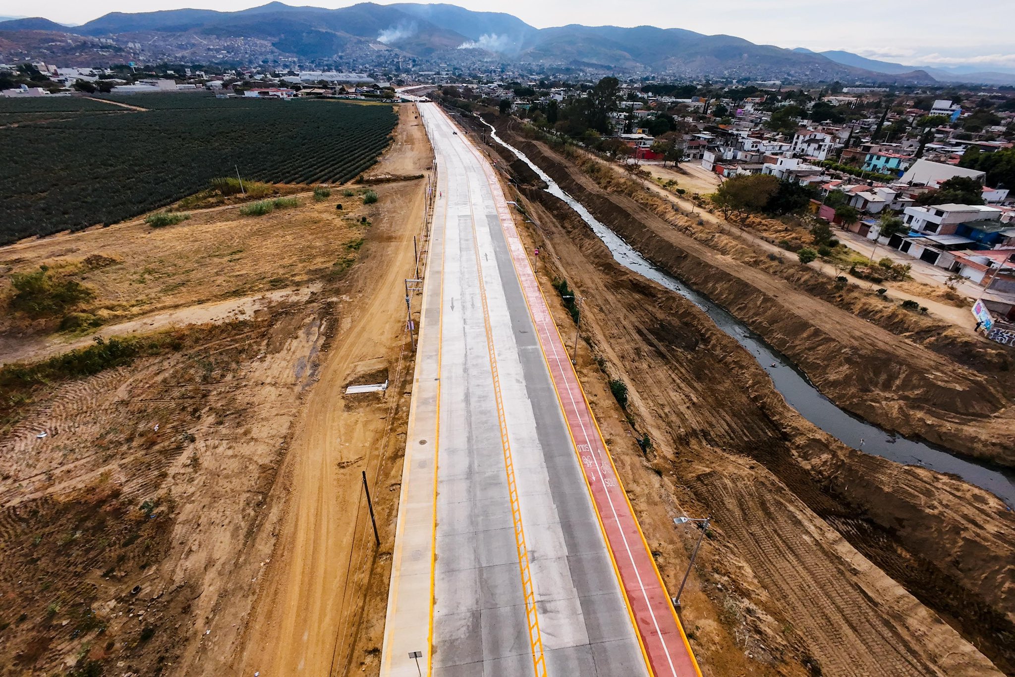 Esta importante vialidad donde convergen los municipios de Oaxaca de Juárez, Santa Cruz Xoxocotlán, San Antonio de la Cal y San Agustín de la Juntas; se construye con cuatro carriles de 3.2 metros de ancho, ciclovía y amplias banquetas que privilegian el tránsito peatonal.