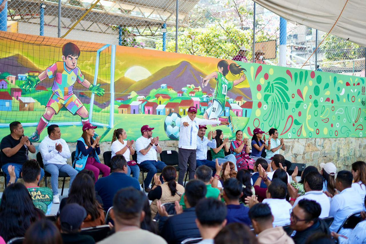 Oaxaca. Con el objetivo de recuperar los espacios públicos en la entidad y en el marco del Día Internacional de la Tierra, que se celebra cada 22 de abril y la Copa Mundial de Fútbol 2026, el Gobernador Salomón Jara Cruz encabezó el Mega Tequio por la Tierra y Murales Mundialistas en la colonia Lomas de Santa Rosa, Oaxaca de Juárez.