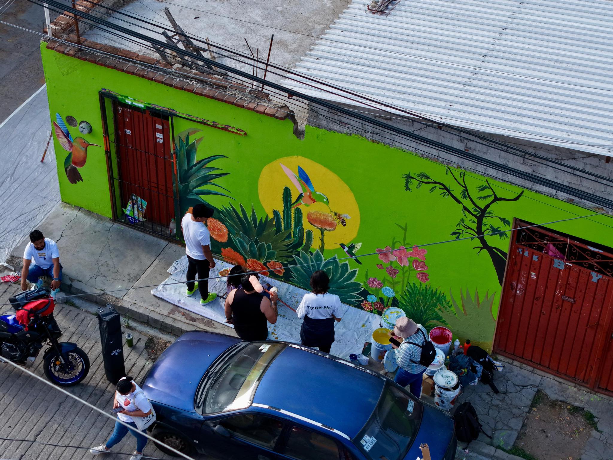 Como parte de las actividades se rehabilita y recupera la cancha de basquetbol de esta demarcación y se pintan 10 murales de un total de 170 que estarán exhibidos en diversos espacios públicos de siete municipios de la Zona Metropolitana del estado.